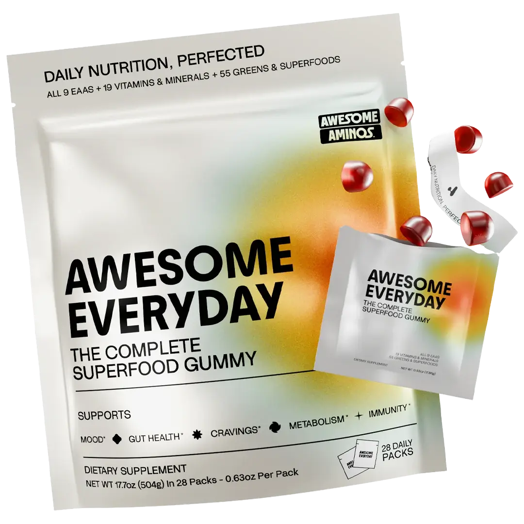 Awesome Everyday™ goes beyond a multivitamin. It includes all 9 essential amino acids, 19+ key vitamins and minerals, and over 55 organic superfoods—making it a more complete source of daily nutrition.
