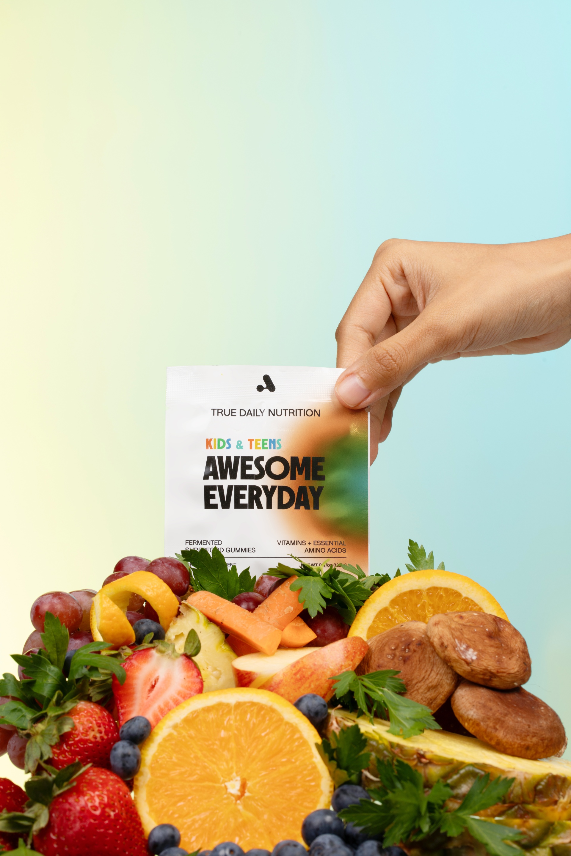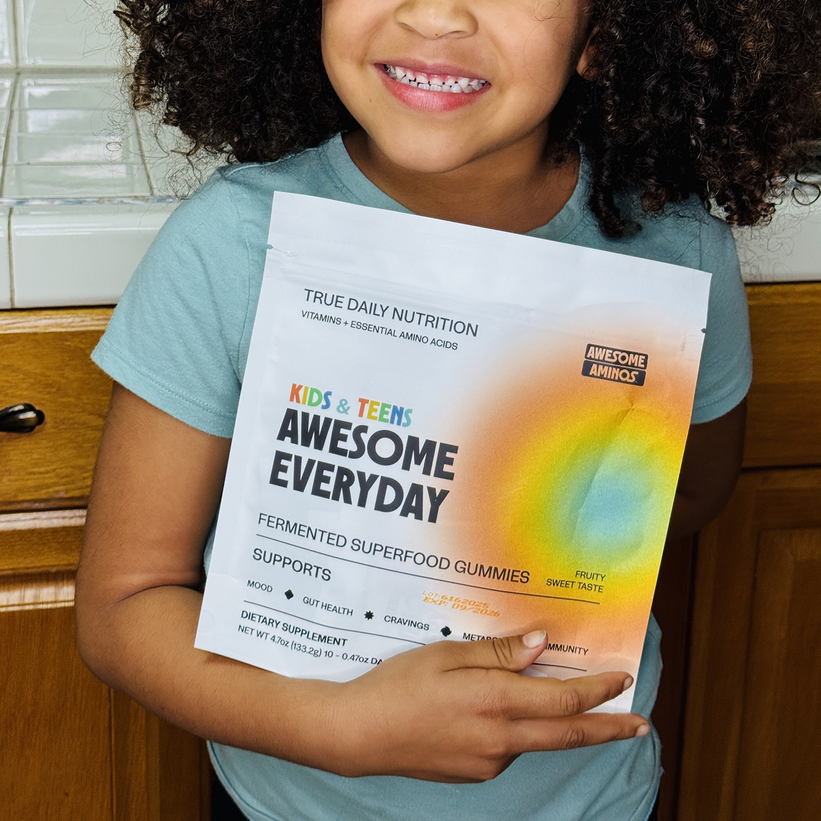 Most kids’ nutrition leaves out what matters most: essential amino acids. Awesome Everyday gives them all 9, plus vitamins, minerals, and organic superfoods in one daily gummy.